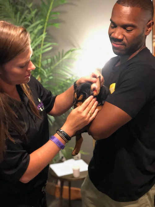 Whether it’s a corporate happy hour, evening event, or just a break from the everyday work, puppies can bring a much needed stress relief for the work place.